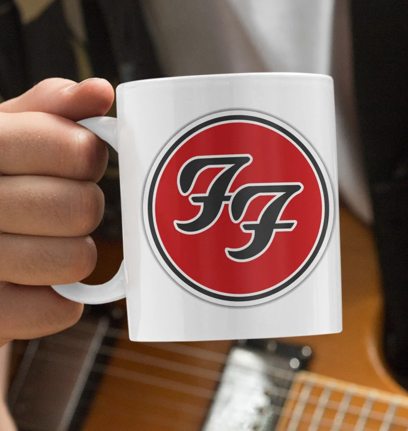 woman holding white mug with foo fighters design merch store 2026 authentic
